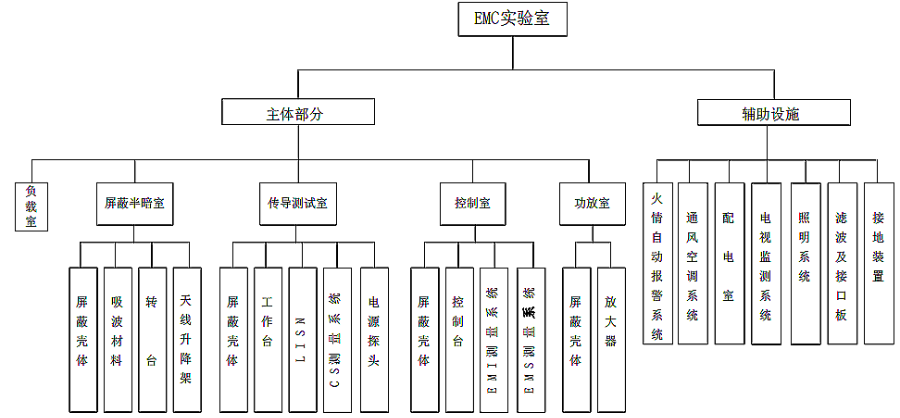 2.EMC实验室功能间:屏蔽室,功放室,整改室,电波暗室,OTA暗室,EMS实验室