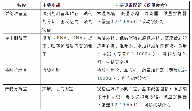 普通PCR实验室主要功能用房关键设备配置如下